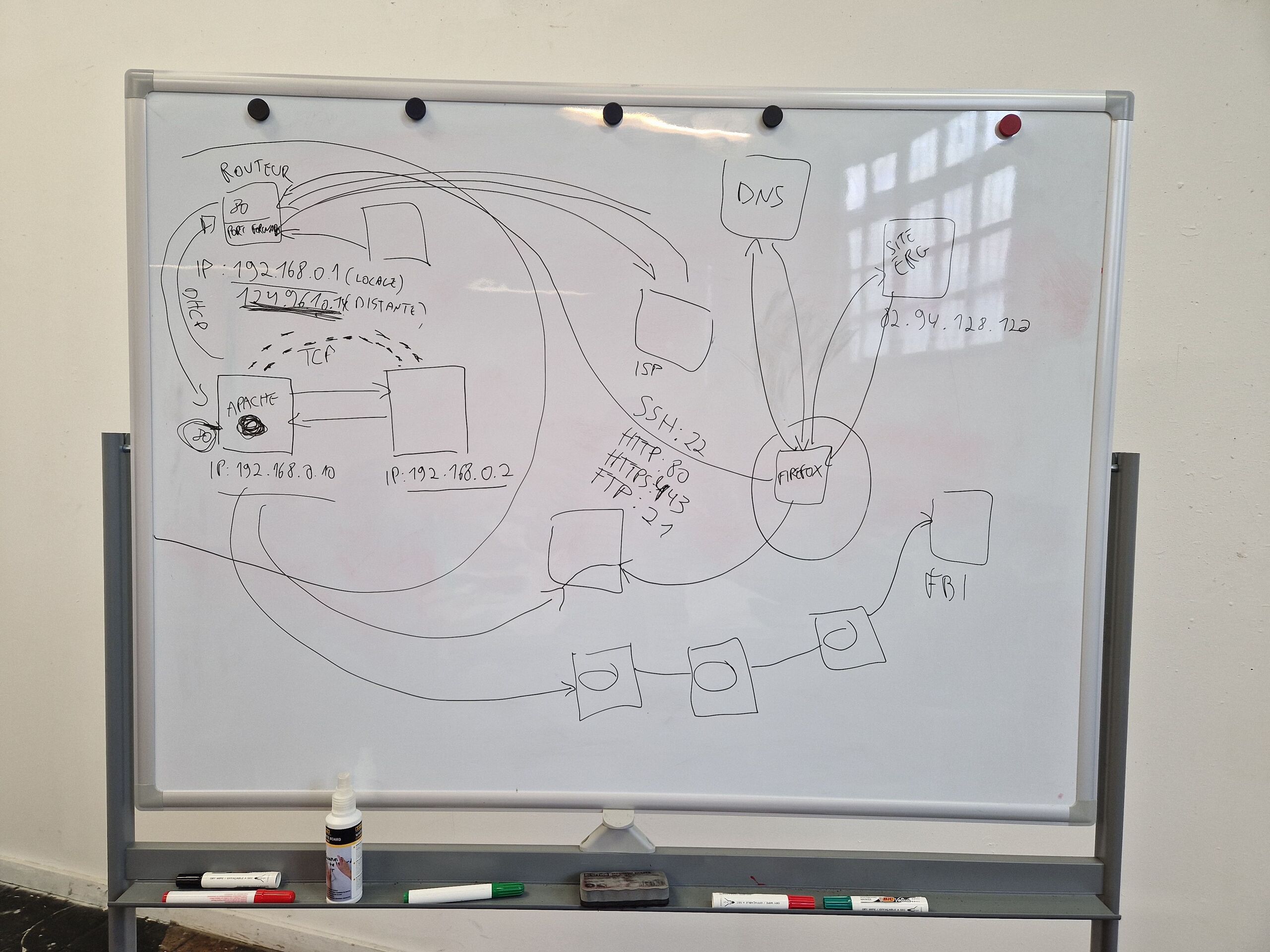 Schéma explicatif des différents protocoles d'échange et ports sur le réseau web